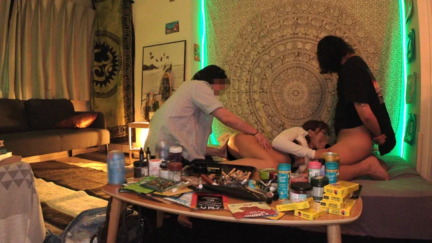女は知らない男の突然の訪問に最初は戸惑っていたけど、3人でxxx吸ってパーティーしたほうが楽しいでしょってマインドコントロールしたら、女の内に秘めていたスケベ心が解放され、マジエロビッチモード。