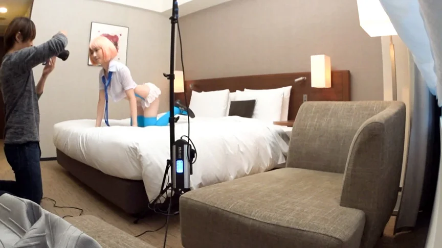 コ○ケでいつも大人気の美少女コスプレイヤーをエロ個撮!!「新しいウィッグを買ったんで着けてきちゃいました♪」とピンク髪での来訪☆お目目パッチリの整った顔立ちによく似合ってます!マジメな駆け出しカメラマンのフリして撮影スタート…の前に、脱衣所にこっそり仕掛けたカメラで着替えシーンを隠し撮り!ブラを外すとたわわに実った美巨乳がぷるんっ♪こ、これは早くむしゃぶりつきたい…っww持参してくれた衣装もロ○えろ系で破壊力バツグン!!超ローライズのフリフリパンツからおマンコが今にもハミ出そうですww撮影休憩タイムに優しい気遣いと見せかけた肩もみサービスから、少しずつボディタッチしていき甘~いベロチューであっさり陥落☆色白おっぱいを揉みしだかれながらのクンニに敏感おマンコはとろっとろ⇒手マンで激しく掻き回されて「イク…っ!!///」とかわいい声を上げて昇天!電マ責めの快感にすっかりハマったみたいで、手渡すと自らクリに当ててオナニー♪はあはあ荒い息遣いでまたもや痙攣アクメ!!カメラ目線でねっとり乳首舐め&ジュポジュポ濃厚フェラのご奉仕タイムから、我慢できずに膣内へIN☆デカチンの膣奥突きに美巨乳をふるふる揺らし、切ない表情で「気持ちいい…だめっ…!!」と叫びながら何度も何度も中イキ大絶頂!!ハメ潮まで大量に噴いちゃって、せっかくのコスプレ衣装はびっしょりスケスケですww最後はかわいいお顔に精液ぶっかけフィニッシュ!!全国のカメコの皆さん、人気レイヤーさんをこんなあられもない姿にしちゃって本当にごめんなさいwww
