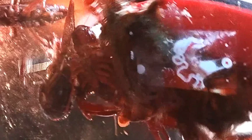いよいよ大詰め!ハッピーメリークリスマス!皆ケーキが食べたい?テーブルの下でみんなで口開けて待ってなさい。ほらケーキに見えるでしょう、3,4匹をまとめて踏み潰し。こっちに向けてお口を開けてケーキが落ちてくるのを待ってなさい。今回は真横からも高画質で撮影、迫力ある映像とセリフが目白押しです。どこをとってもクライマックス。