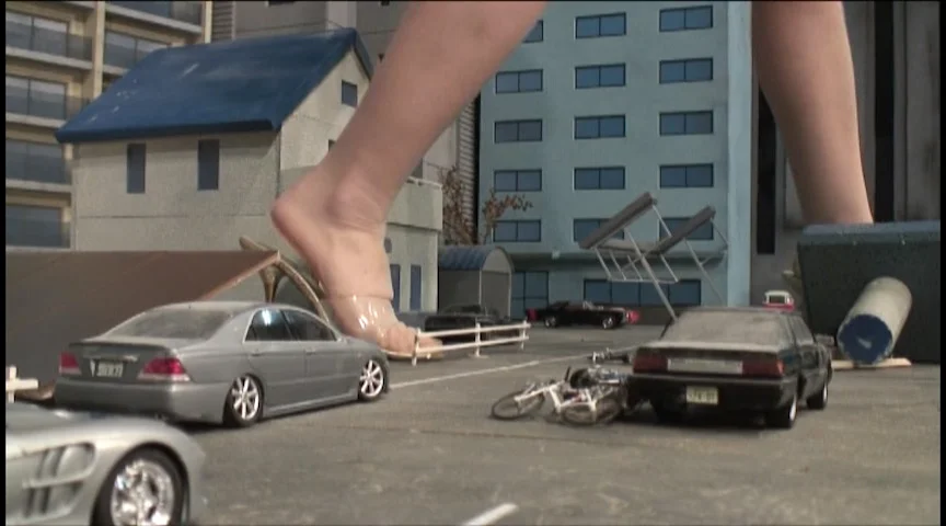 またしても街に災いが降りかかる!秘密結社に捕らわれ、巨大化させられた女性が街を襲う。逃げ切れずに踏まれる人々、地響きと共に崩れる建物、大地を揺るがして車を踏み壊す巨大娘…。果たして組織の野望は達成されるのか?