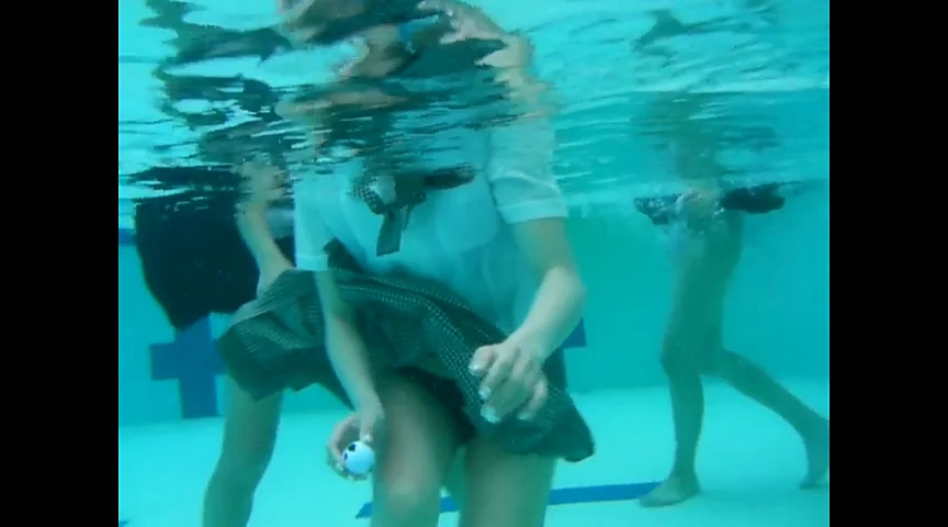 制服水泳大会第九種目夏服のままプールにあるボール拾い。ポイントが多く書いてあるボールを拾って高得点GET。夏服は、びしょ濡れになり、ブラジャーも透けて見えちゃいます。プールの中では、スカートがひらりと舞ってパンティーも丸見えです!