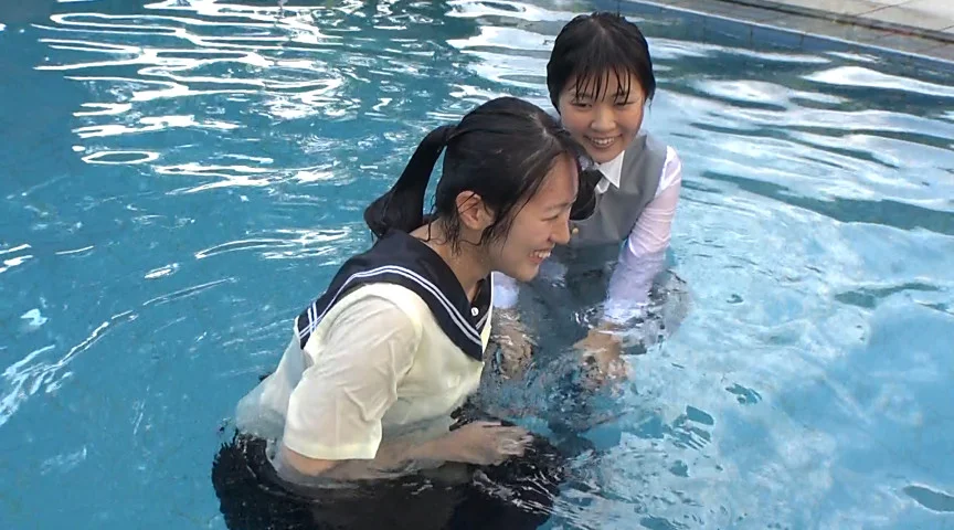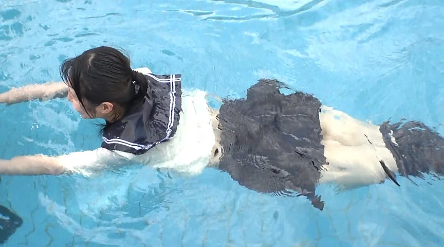 上着って水を物凄くすうの。だけどコートのまま水に入った事のある私達には楽勝。でも長時間泳ぎの練習をしてると流石に疲れが。上着を脱いでからも厳しくも優しい練習。バタ足の練習など見応え満載!