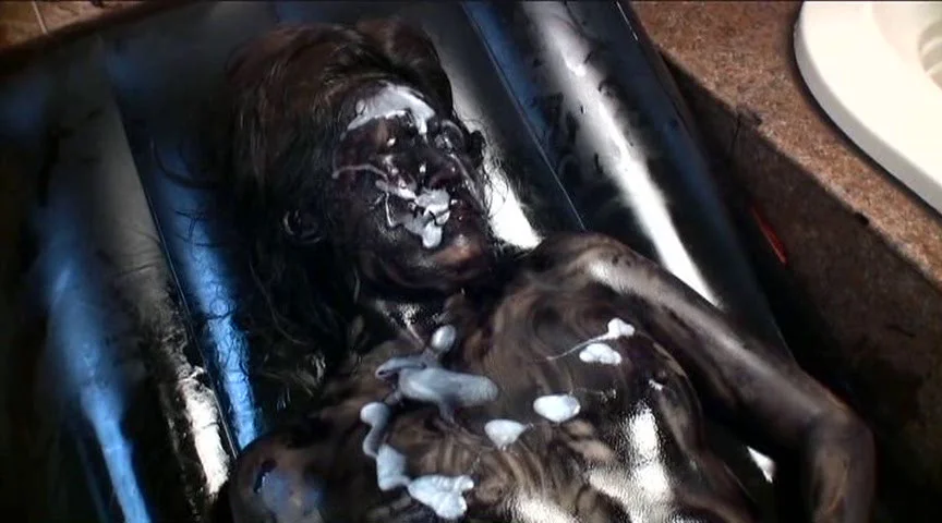 「COLOR02」以来、久しぶりに使用した墨汁での全身真っ黒映像です。墨汁は、普通に身体に塗っても、身体から出る油分によって、意外と塗りづらい為、まばらに見えてしまいますが、全身真っ黒にされた状態で、本気でイッてしまう姿は、ほんと、オススメです! ※本編顔出し