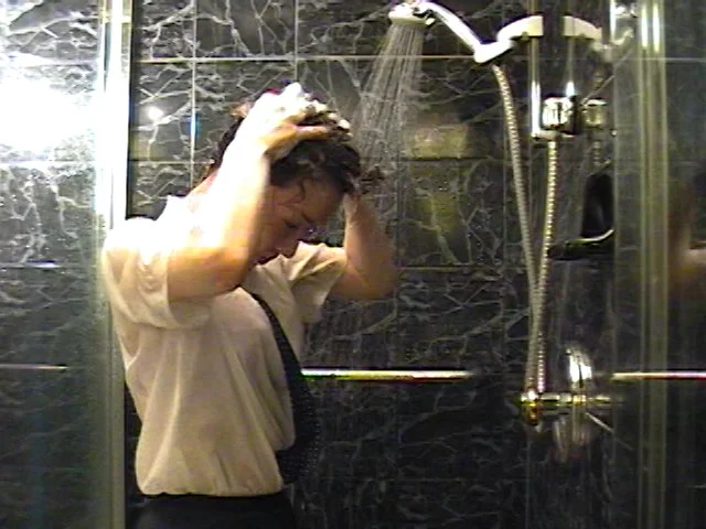襦袢の下は全く何も身につけていないので、濡れる前から「え?」と思うようなアブナイシーンが織り込まれています。濡れてからは、もうほとんど素肌です。Wet作品として、許されるギリギリの露出ではないかと思います。むしろ、アダルトチックなイメージビデオに近いかも。そんな中、グレーベストの制服の存在は光っています。短めの黒いタイトスカート、きちっとしたグレーのベストにネクタイ…濡れるとか濡れないとかではなく、こういう制服のお姉さまの近くでお仕事が出来たら、それだけでも幸せかもしれませんね。夢のようなひとときを、この作品でどうぞ堪能して下さい。なお、Moonfaceでは珍しい「Messyシーン(葡萄をつぶして汁を洋服にかける)」が含まれている作品でもあります。衣装:5着(OL制服、白襦袢、白サマースーツ、水玉ワンピース、喪服)