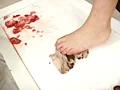 食べ物を女性が踏み潰し、男がそれを食べる…足にこびりついた汚れを口ですみずみまで綺麗に…。(B・BLACK)
