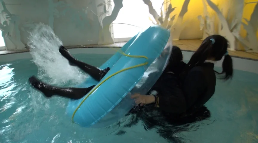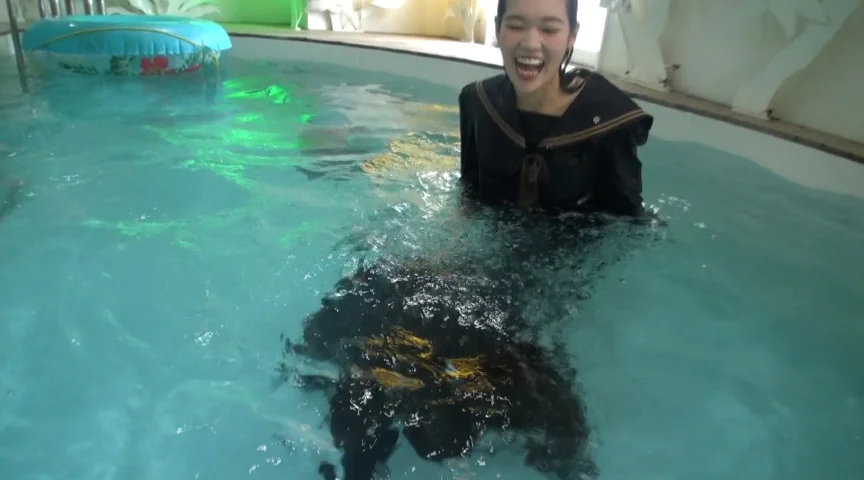 新しくモデルチェンジした制服「一度お姉ちゃんに着せてみて」せっかく着た妹の新しい制服と自分の制服を入れ替える姉。その新しい制服を着たまま「乾かせば大丈夫」とプールに飛び込む姉。結局姉妹二人でびしょ濡れに…。