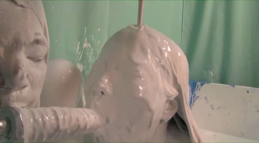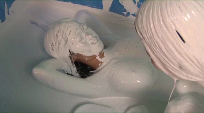 2人の女性が白の絵の具をかけあったり塗りあったり、背中に文字を書いて遊んだりし、絵の具まみれになっていきます。頭上から絵の具をかけ髪の毛も顔も全身真っ白になってしまいます。四つん這いになり絵の具まみれのオモチャを入れられたり、見ごたえのある作品です。