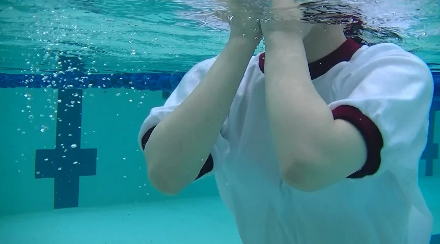 みんなに内緒にする代わりにってやっぱりコレよね。でもあんまり見ないでね。ジャージの上だけを脱ぎ、体操着姿になった彼女。動きやすくなったようで、プールを満喫しております。水分をたっぷり含んだ体操着姿をご堪能ください。