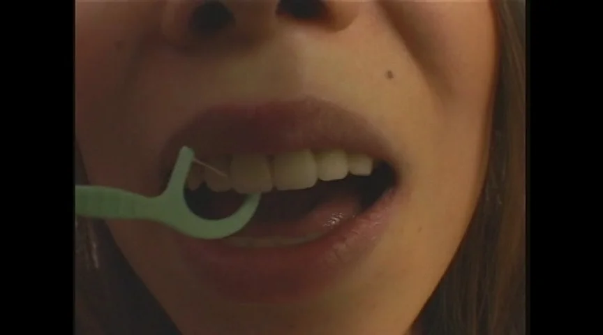 みなさん歯磨きしてますか?歯の健康を保つためには歯磨きだけではダメなんです。歯間ブラシで歯の隅々にたまった汚れを取り除きましょう。そう歯と歯の間の汚れはキレイなお姉さんにも溜まるんです。煎餅食べて、お菓子を食べて、爪楊枝でその汚れを取って見せて貰いましょう。