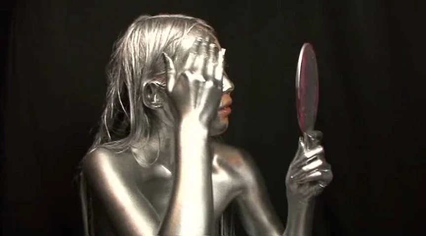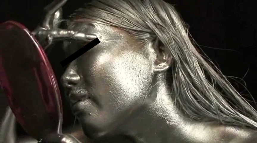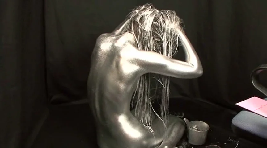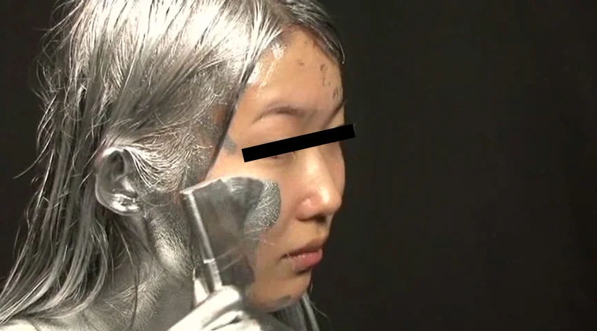 新シリーズ、銀粉を全身に塗ってみました。金粉とは違う、輝きをご覧頂ければと思います。今回は目にしみない様に配慮して撮影を行えましたのでかなり長い時間、ご覧頂けます。ちょっと残念なのは、モデルさんが付けまつ毛をしている為、まつ毛が邪魔をして目が見えづらくなっております。更に付けまつ毛が、銀色を吸い取る為、黒目がすぐに出てきてしまっておりますが、銀目になっている姿は必見ですので、是非ご覧下さい。 ※本編顔出し