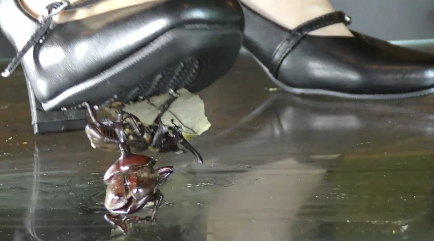 超どアップだったり、下からCCDで全体を撮ったり、真横から4Kビデオカメラで鮮明に撮影したりどのシーンもボツに出来ないフェチには必見の映像!かかとで突き刺したり、2匹をまとめて踏んだり、靴の裏にくっついた葉っぱごと踏み潰したり、また左右に踏みにじらないと潰れないのでぐりぐり凄い音で踏みにじっています。