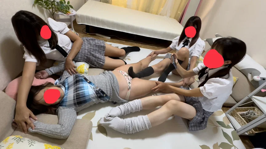 焼肉をご馳走になりに来たはずなのに旦那へのお仕置きタイムになって旦那は逃げてどこかに消えてしまった…そこにもう一人妹の梨央ちゃんのクラスメイトはっちゃけ娘のあみちゃんが「やっほー焼肉たべに来たよー」と登場!旦那がデリヘル行ったから3人で電気アンマでお仕置きしたことを話すとあみちゃんは「それって梨央のお姉ちゃんが悪いんじゃない?」と焼肉に連れてってもらえなかった責任は嫁の翔子が原因だと言い出した!そうなったらもう事の顛末は皆様の想像通りw女子3人で嫁の翔子を押さえつけて3人がかりで電気アンマとくすぐりをやりまくるw妹とそのクラスメイトに電気アンマをくすぐりで逝かされまくる嫁!