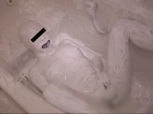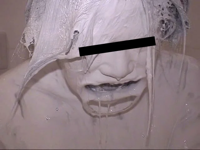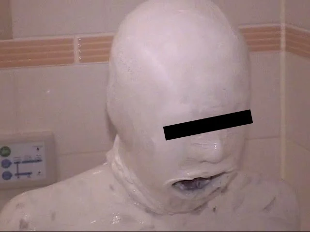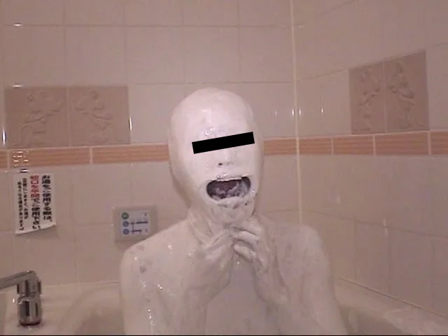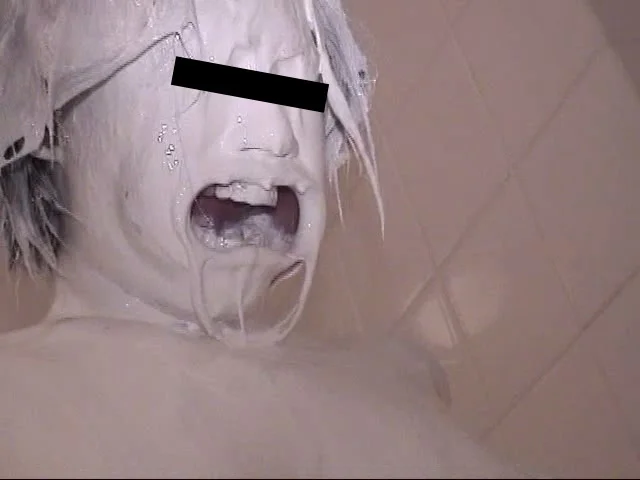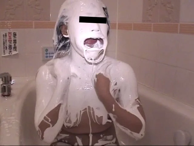 白色の絵の具を大量に使ってのMESSYプレイです。頭の上から絵の具を浴びせられますが、アングルワイダー(強制開口器)を利用した為、口の中まで絵の具まみれになってしまいます。その後、ストッキングを被り、さらにマニアックな内容に…。 ※本編顔出し