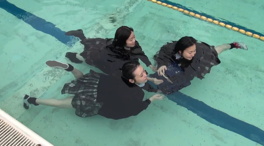 冬制服のままでも浮き具を… サバイバル水泳活用編