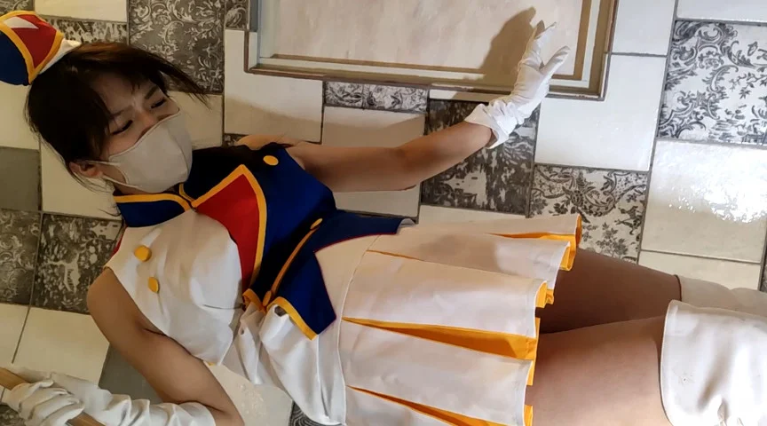 今回はあのあみちゃんが可愛いユーフォニアムコスプレで、音楽に合わせてリズムに合わせて足踏みしながら透明ケースに入れた複数のザリを無慈悲に一気に踏み潰します。