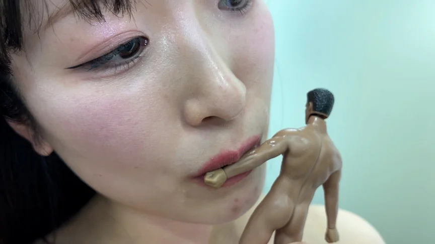 とろあまタレ目女子が唾液たっぷり舐めまわしM男人形
