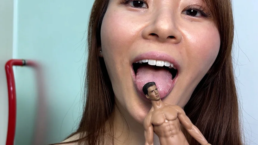 れなちゃんがM男人形を唾液たっぷり舐めまわす