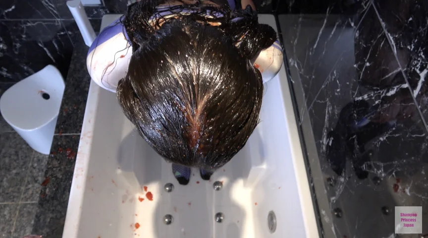アニメ大好き、グラマーなロングヘア女子さん、キャラクターに扮して、バスルームでトリートメントしてもらいました。女のコらしく、イチゴジャムでヘアケアはいかが?黒髪にイチゴジャムがまとわりついていくシーンは、なんともセクシーです!