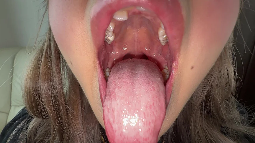大きくて長い舌!八重歯!ガパッっと大きく開く喉奥!最高です!喉チンコまで御開帳w根元は太く大きくて先が尖がった長めな喉チンコ。