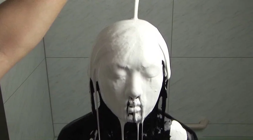 かわいいロリ体型の18歳になったばかりのモデルさんが絵の具まみれになってしまいます!!つま先から塗り始め、最後には顔にまで塗り、頭の上から絵の具を流してしまい、全身絵の具まみれに!!全身真っ黒になった所で、さらに白い絵の具を頭からかけて行きます。 ※本編顔出し