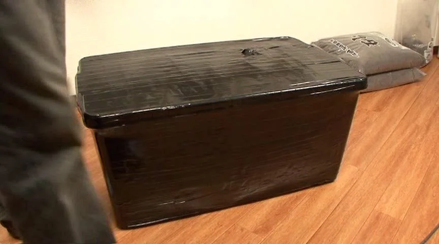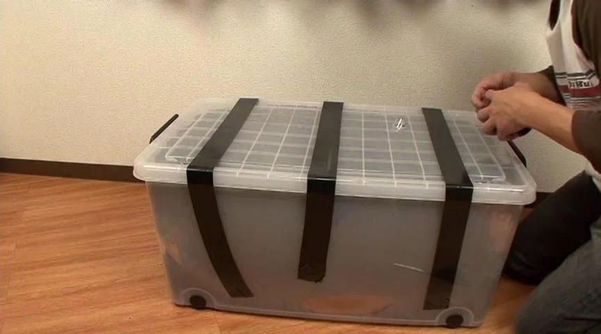 箱の中に「砂」とともに女性を閉じ込め、絶対に中から開ける事ができない様に、ビニールテープで完全に拘束した状態にし、運送会社へ運び、翌日に配達してもらい、箱を開けると言った内容です。この映像は、フィクションです、実際に「人」を箱に詰めた状態で運送会社に委託する事は、大変危険な行為です。絶対にマネをしないでください。