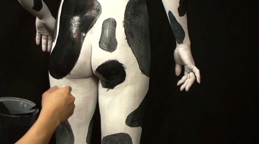 初めてチャレンジする、ちょっと本格的なアニマル柄のペインティングです。まずは全身に白粉を塗り、黒絵の具で、模様を書いていくという、単純な作業ですが、意外と、時間がかかってしまいました。初めてという事もあり、今回の経験を生かして、次回作につなげていければと思っております。 ※本編顔出し