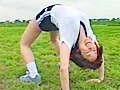 体操着で原っぱを駆ける中山ゆかりちゃん。野原の真ん中で生着替えを終えると今度は柔軟体操を始めます…屈んだ時の開いた胸元や、開脚時の股間には思わず視線集中!室内に戻ると男にブルマの脇からローターを突っ込まれる彼女…ブルマ着用のままチンポも挿入され、跳び箱の上で激しいファック!美乳にザーメンをかけられた後は、ブルマのままで放尿までしてくれちゃいました。