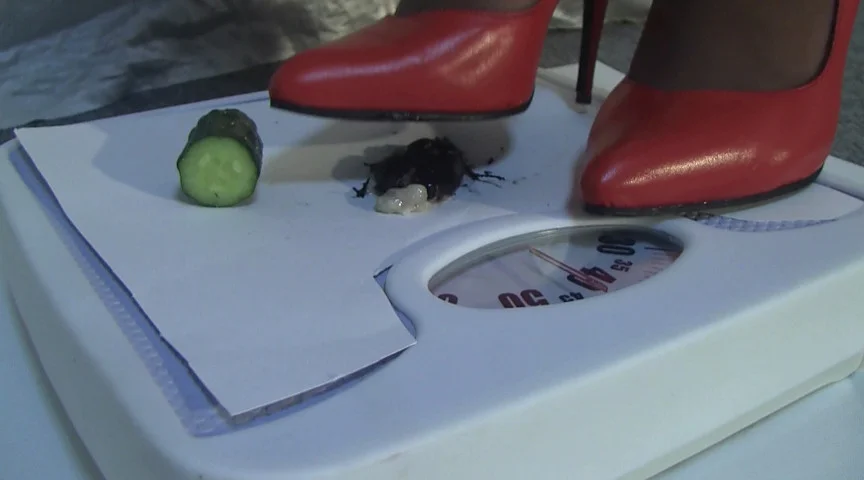 パイプ椅子に座った赤いハイヒールに黒い薄手のパンストを履いた女性が登場。体重計の上に大量に置かれた虫をハイヒールやサンダルで踏み潰していきます。つぶれた虫からは液体が…。クラッシュ好きの方にお勧めの作品です。