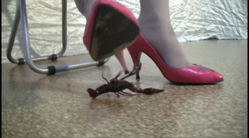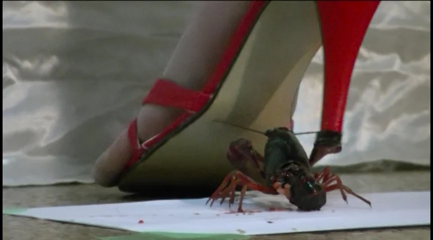 ザリガニをあらゆる方法で料理しました!パンプスとサンダルの下で無慈悲に消えていく多くのザリガニたち…。高いヒールの下でザリガニたちが大量に粉砕されました。一体何匹のザリガニが犠牲になったのか…。
