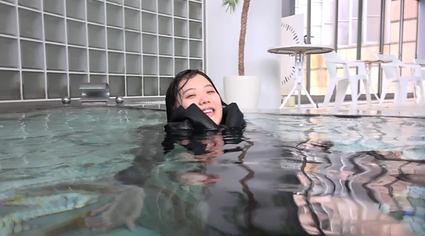 制服のまま飛び込んだ後はお風呂で一休み。プールから上がるにも制服がびちょぬれでちょっと重たそう。また制服のままお風呂にゆっくり入ります。ぷかぷか浮かんで気持ちよさそう。 ※本編中、音声・画質に不鮮明な箇所がありますが、異常ではありません。