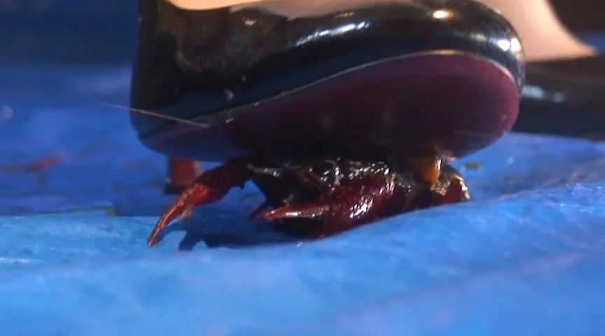 モデルさんは20歳以上で販売許可得ています。今回美少女のめいちゃんには、ハイヒールでザリガニクラッシュしてもらいました。ゆっくり踏みにじったり、走ってきてジャンプしたり!また今回はさらにゲームペダルの上にザリガニを置いてペダル踏みしながらクラッシュ!実際にゲームはしていませんが、している体でがしがし行ってもらいました。世界で一つのマニアック映像お楽しみ下さい。