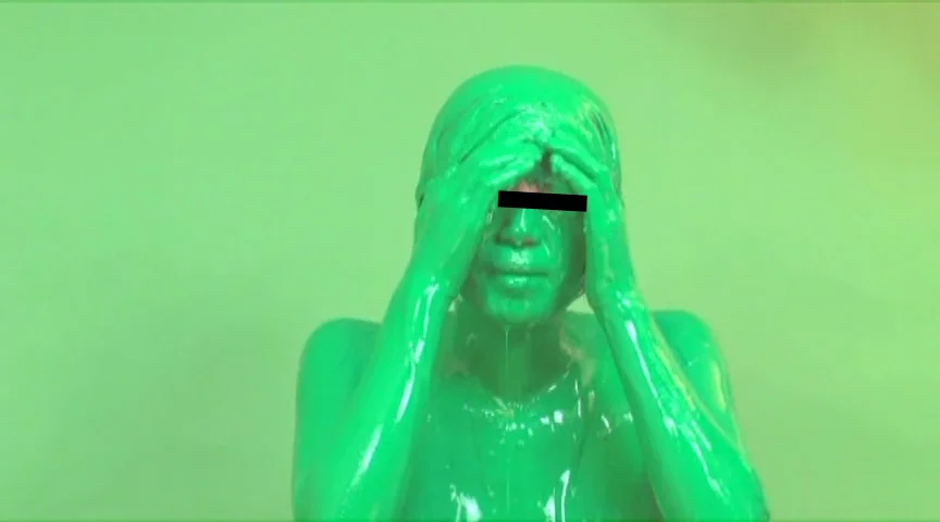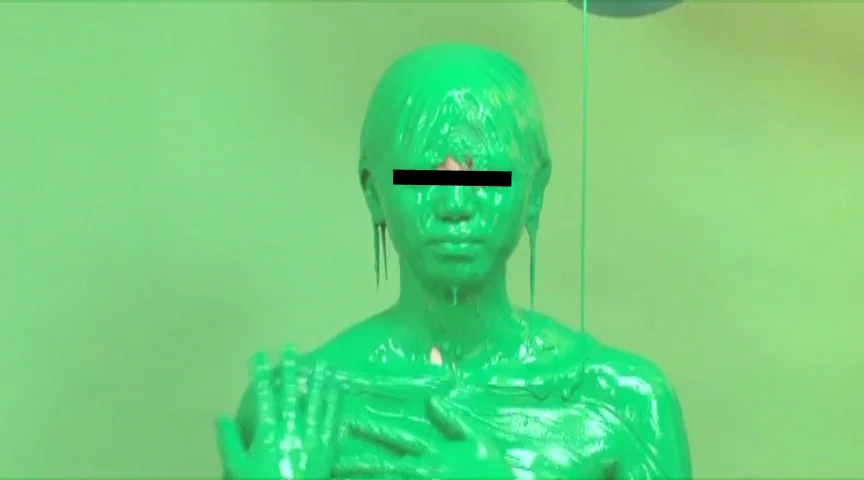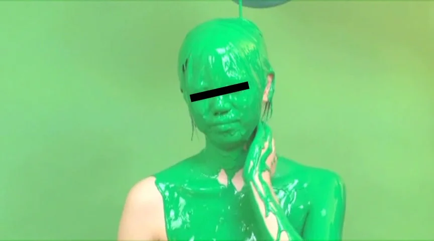 今回は、笑顔がかわいい女の子が登場!!頭上からかけられるグリーンの液体を顔や体にぬっていきます。あっという間に全身グリーンになりました!!また、この映像には、音声は収録されておりません。収録時間も非常に短いですので、ご注意下さい。 ※本編顔出し