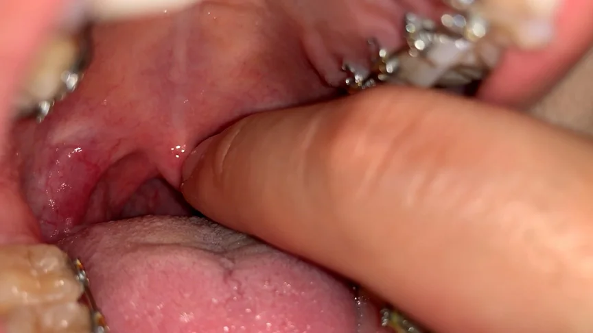 喉ちんこを触らせてもらいましたがめちゃくちゃ柔らかいです。その喉奥のネバネバは少しだけ溝臭くて興奮しましたWW喉奥を手な付けられて感じて催○状態になっていく様がエロいです。舌には白く黄色味がかった舌苔がついていて凄い良い匂いです