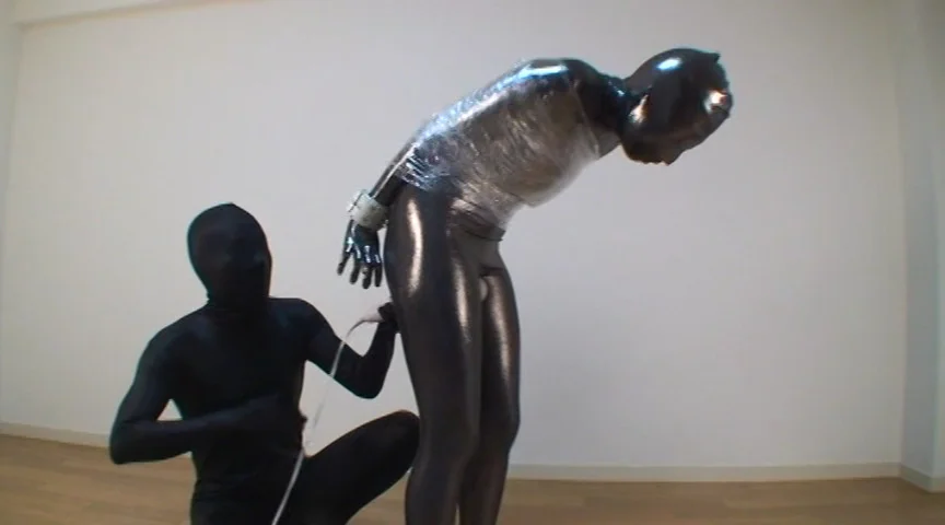 テカテカ黒光りするメタリ… 拘束ゼンタイSEXメタリックブラック♀&ブラック♂
