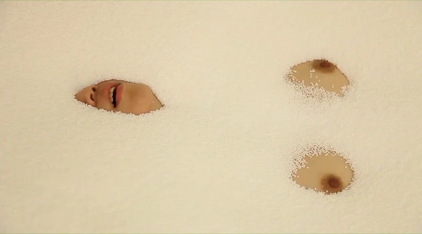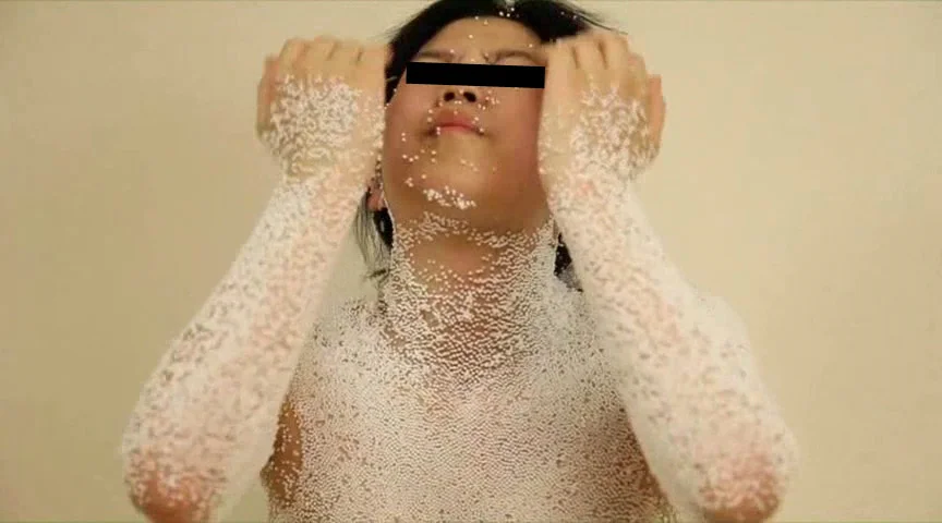 発泡ビーズと言う、クッション等に入っている、発泡スチロールが粒状になった物を使用してみました。大量の発泡ビーズが敷き詰められたところに入ってもらうと、あっという間にカラダ全体が埋もれていきました。静電気や、汗で付着した発泡ビーズまみれの姿は必見です。後半は、電マで責めているシーンを収録!! ※本編顔出し