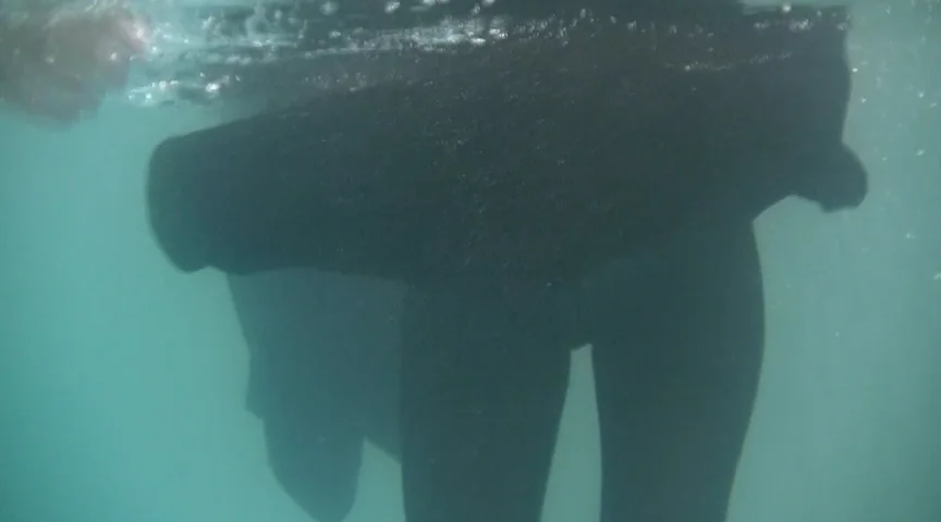 お姉ちゃんは雪遊びで冷え… 真冬の落水練習