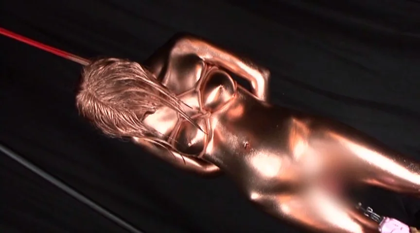 今作は、両手を後ろで縛った状態で、銅粉を目から塗ってみました。後半は、電マとモーターバイブ責めです。ブロンズ像のような身体に食い込む縄…美しく輝く光沢感はたまりません。おまけとして、撮影終了後のお風呂場のシーンも収録しております。