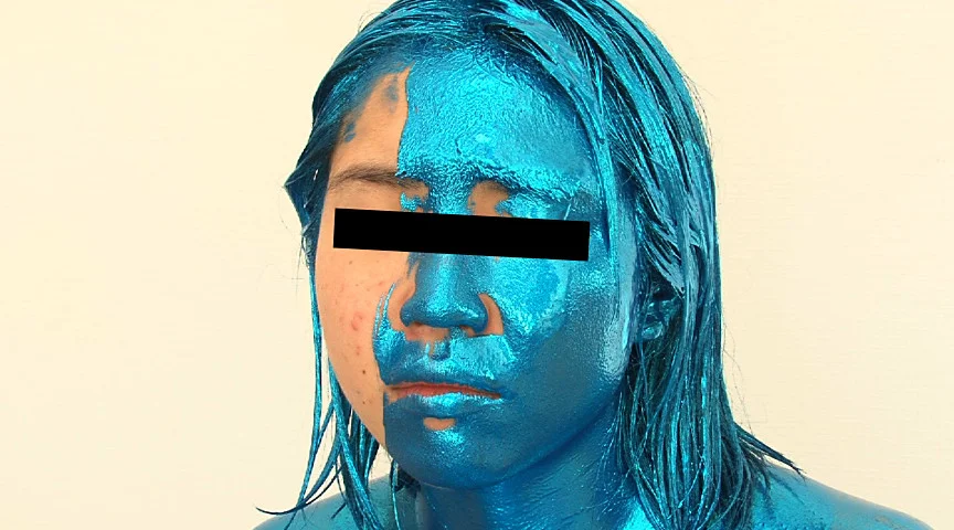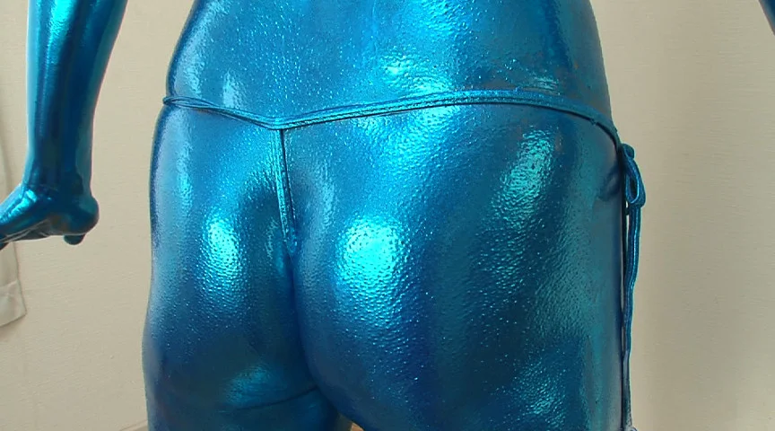 新色メタリックブルーの登場です!!この色は以前からどうしても挑戦してみたかった…。ただ、材料費が一回1万円…高価です…。丁寧に、全身くまなく塗りまくりました。お口の中までブルーです。 ※本編顔出し