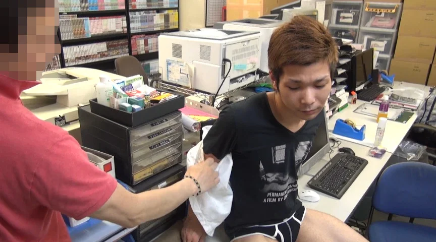 アダルトショップで挙動不審に動く青年。DVDのコーナーで立ち止まり、DVDを一枚こっそりとバックの中へ…。そのまま店を出ようとしたその瞬間「ちょっとお客さん!!」と呼び止められ、事務所へ連れ込まれる。最初は万引き行為を否定していたものの、バックの中身を検められ完全アウト!「警察に通報する」という言葉に屈し、あとは店員の成すがままに…。ただ、運が悪かったのは更にこれから。ここの店員はバイやらゲイやら皆、アブノーマル。万引き青年を真っ裸にして凌辱し、それをカメラで撮影されてしまう。ケツを弄り、事務所のデスクの上でまんぐり反して、ローターやらハリガタやらバンバン突っ込みいたぶりまわす。恥辱、恐怖でチンポもキュンと縮こまってしまうが、店員の容赦ない御仕置きは続く。「イクまで終わらないからな!」そんな最中、店にお客が来て、店員は青年を真っ裸のまま放置。泣きそうになりながらも、ケツ穴にハリガタ突っ込まれたままドピューッとフィニッシュ。これでこの場は許されたとしても、これが性奴への第一歩だとは青年が知る由もない。