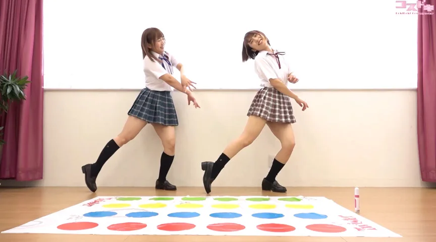 阿部乃みくちゃんと篠宮ゆりちゃんの仲良しコラボがコスドキで実現!素晴らしいパフォーマンスを、今度はコラボにて発揮してくれました!全編通して仲良し楽し気なハッピーオーラがすごい!見てるだけで元気が出て気づいたら笑顔になっていること請け合いです!アクティブなパンチラツイスターゲームバトルからケモ耳透け制服での知恵の輪対決罰ゲーム、そして温泉浴衣まで、楽しくエッチでハッピーな極上バトルをたっぷりお楽しみくださいませ!