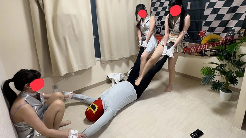 キャンギャルの撮影会に行… 3人のキャンギャルに電気アンマやられまくり逝かされる
