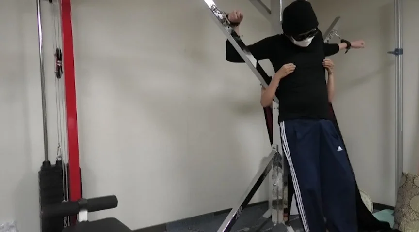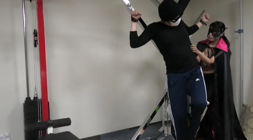 終始「こちょこちょ」と言… マント痴女に磔にされて、くすぐりの刑にかけられたM男