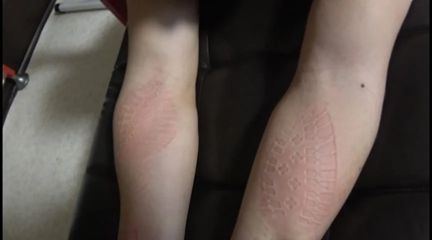 彼女は23歳でレストランのウェイトレスさんで身長166cm・足23.5cm。今回はジーンズインニーハイブーツとミニスカポリス&ロングブーツ編です。やはり美脚なのでブーツがよく似合っていてカッコイイしそそられますね。背中、胸、お腹、顔、腕、手を徹底的に踏まれ痕を付けられまくってます。男優君も身体にブーツのヒールや&マークが付くのを見てかなり興奮し顔の近くでブーツの踵やヒールで踏まれる喜びを新たに発見したみたです。とにかくブーツでの踏みと乗りと舐めに徹底的に拘ったのでブーツ好きさんに満足してもらえるフェティシズムの強い作品になったと思いオススメです。彼女の様な美人で美脚で魅力的な女性のブーツで踏まれたら最高ですね。 ※本編顔出し