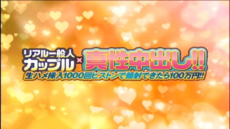 ルールは簡単!ナマで挿入して1000回ピストン丁度で顔射できたら100万円!!1000回以内で発射しちゃっても、5分以内に勃たせればザーメン2出しもOKです!!賞金100万円獲得のため、カップルが本気の生姦SEXを魅せます。あまりの気持ち良さに我慢できず真性中出し続出!!現代の少子化社会も、このゲームが流行れば早期解決!?