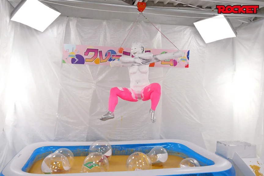 ボディペイントで人間クレーンのアームになりきり、どろんこプールにある景品を恥ずかしい全力キャッチでドボン!泥、小麦粉、マヨネーズ、墨汁、インクなど大量のWAM素材でカラフルな汚れ姿が楽しめる!ドロドロのままフェラやセックスのエロ罰ゲーム!かつてないスタジオ中汚れまくりの壮絶FINAL!