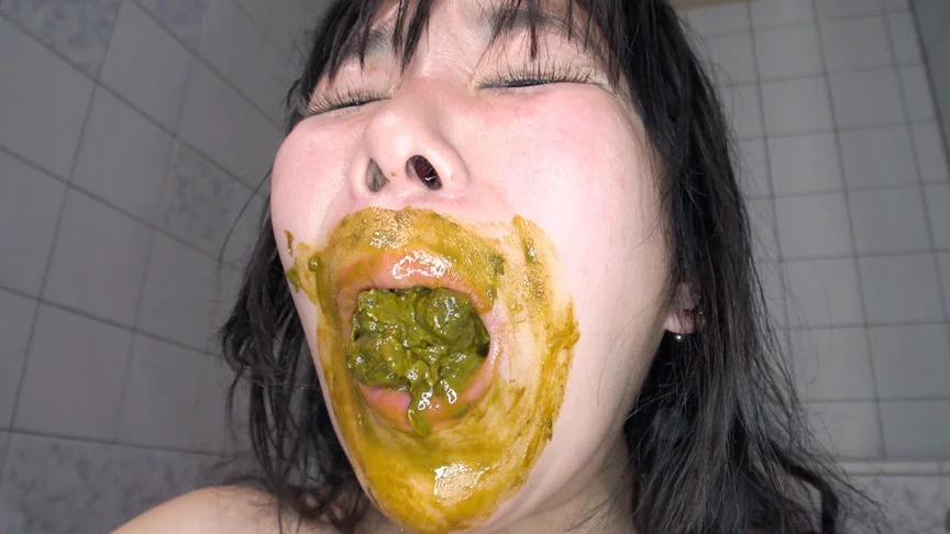 歪んだ性欲望のままに排泄汚物と戯れる女…糞だらけの指で膣をほじくる不潔マンズリ。固形便をあふれるほど口に頬張ると興奮の極みに…。胃袋に消えたはずの咀嚼便を嗚咽しながら大量リバース!