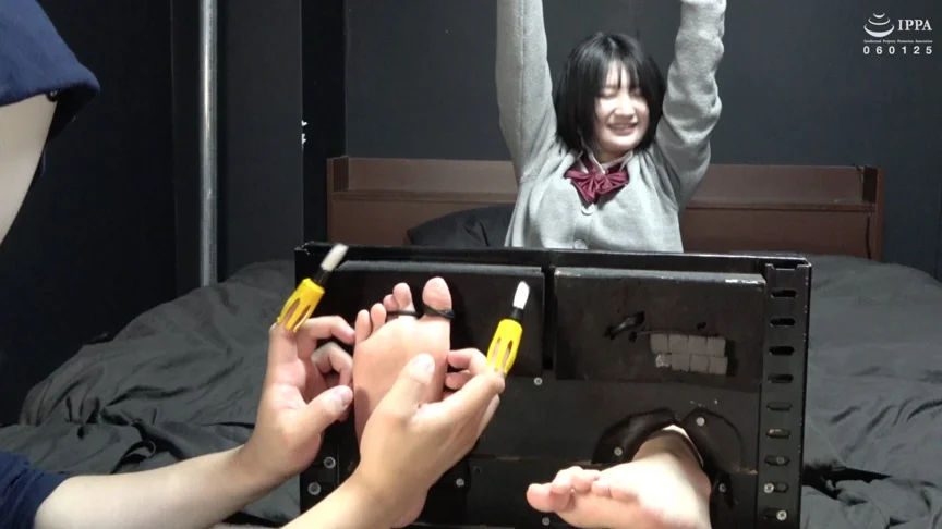 小動物系制服女子を足裏をがっちり足枷拘束してくすぐりました!くすぐられて戸惑う制服美女がとても初々しいです。笑って良いのか、悶えて良いのかわからず右往左往する感じが萌えます。ローションブラシで耐えきれずに少し悶えてしまう感じなども必見です。大笑いする作品ではありませんが、超初々しくて処女的な感じが何とも言えず最高です。オススメですので是非!