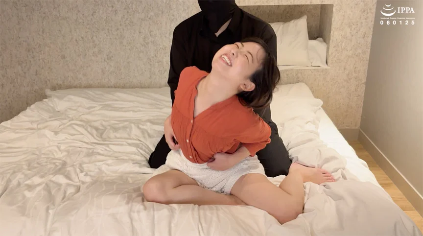ベッドの上に、私服のかりなちゃんとM男が座ってまずは「お疲れ様」からスタートします。