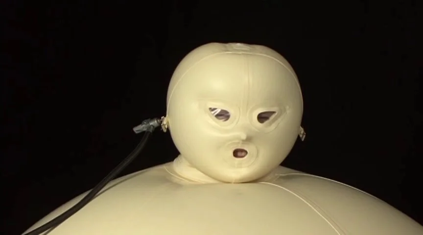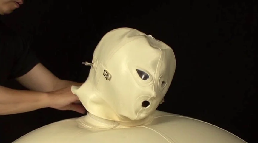 海外に特別注文した、オリジナルカラーの「Inflatable ball」です。今作はテスト的に撮影した為、収録時間は短めになっております。この、「Inflatable ball」は、外に膨らむだけではなく、内側にも膨らむ為、中に入っている女性は身動きができない、全身拘束状態になります。まずは、普通に空気入れで膨らまし、更に空気圧を高める為、電動ポンプにて、空気圧を上げました。この状態で、全く身動きがとれない状態になるので、次は、顔も圧迫します。完全にラバーに包まれ、圧迫された状態で、最初から入れてあった電マに、電源を入れます。電源はタイマー方式になっており、タイマーが切れるまで、電マは動き続けます。途中で、タイマーの時間を増やし、女性を放置して、コンビニへ時間つぶしの為、買い物に行ってきました。帰宅した所、録画していたテープが終了していたので、新しいテープに交換して、何故か倒れている状態の女性を救出、倒れたショックで、唇を噛んでおり、出血していました。疲れ果て、ぐったりしている状態で、映像は終了しております。途中、ハプニングもありましたが、ラバー拘束好きの方に楽しんでご覧いただける作品となっております。 ※本編顔出し