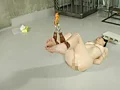 最初は四つん這いから始まり、乗馬鞭で打たれる。M女の燃料口となる肛門を更に拡張して行き、浣腸器はノズルを外され本体丸ごと肛門にブチ込まれ、水槽に脱糞する。強制開口マスクを装着され、チンポを喉までブチ込まれナマ挿入。強制開口された口内にザーメンを発射され、更に小便も注ぎ込まれフタをされる。続いて、宙吊りで激しい一本鞭を打たれ、バーナーで蝋燭をあぶり蝋の雨を浴びせる。更に逆さ吊りにされ、髪にブロックをブラ下げられ激しい鞭打ち。いよいよピストンマシンに近づき、肛門に燃料の小便を注入。更に高速ピストンに耐えられるように、極太ディルドでマンコを拡張。